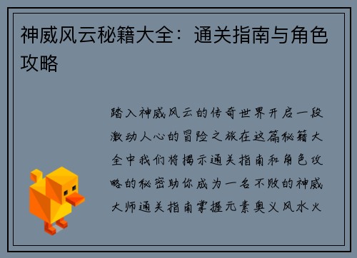 《皇图霸业:职业秘籍揭秘,驰骋战场指南》是一本为皇图霸业玩家量身打造的攻略秘籍。它深入剖析了游戏中各个职业的特性、技能组合、装备搭配等方面,为玩家提供了全面而实用的指导。 职业特性详解 该指南对皇图霸业中的五大职业(战士、刺客、法师、道士、弓箭手)进行了深入分析。每个职业都拥有各自独特的特性和优势。战士以强壮的体魄和近战能力著称;刺客以敏捷的身手和爆发力见长;法师善于使用强大的魔法;道士兼顾辅助与...