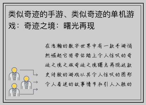 在暗影笼罩的世界中,一把真红之刃闪烁着希望的光芒。这是一把传奇之刃,传说中由神匠锻造,拥有劈开黑暗的力量。威廉希尔足球赔率网站 当黑暗势力肆虐横行,吞噬希望之光时,一支由无畏冒险者组成的队伍踏上了寻找真红之刃的征途。他们穿越险恶的峡谷和阴森的森林,面对着致命的...